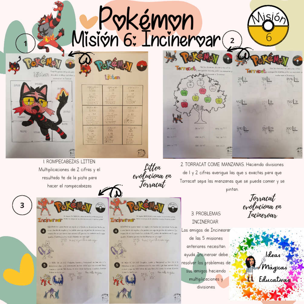ACT 3: PROBLEMAS INCINEROAR: Los amigos de las 5 misiones anteriores tienen problemas que deben solucionar (multiplicaciones y divisiones)